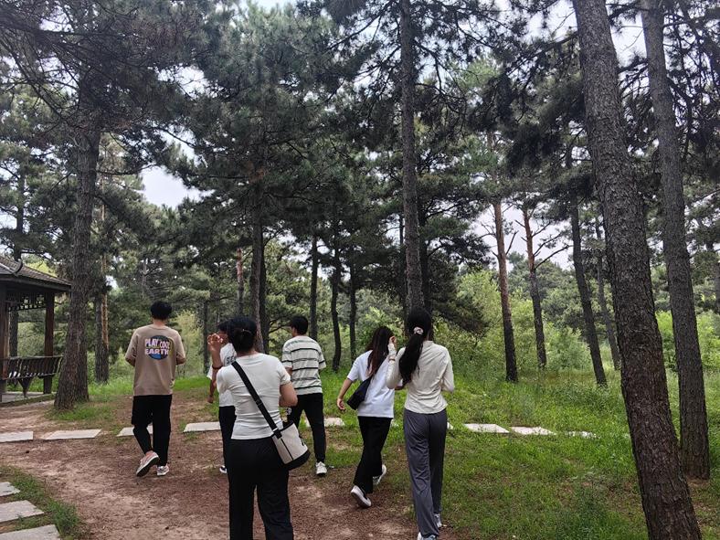 70年来,辽宁省固沙造林研究所的科研人员,响应“绿化祖国”的号召,志锁“黄龙”,发扬艰苦奋斗的优良传统,打破樟子松不能越过北纬47º线的神话,彰武人民众志成城,植树达11341公顷,被称为万亩松林。植树不易,护林亦难。讲解员带领成员们深入松林,为我们介绍了如何根据树干判断彰武松的年龄,大家认真学习,了解了松树习性,切身体会到护林工作的艰辛。