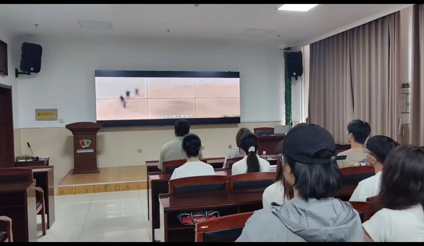 上午9时左右,实践团来到章古台治沙精神干部学校,受到相关人员的热情接待。随后,成员们认真观看了长达60分钟的彰武治沙纪录片。从漫天黄沙到漠上草原,影片生动地讲述了彰武人民70年来的治沙艰辛。每位成员都怀揣着敬佩之意,仔细观看彰武治沙历程,聆听治沙英雄的伟大事迹,用心感悟“矢志不移、永不退缩、默默无闻、甘于奉献”的彰武治沙精神。