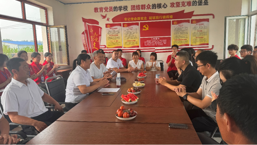 在听取牛艳霞书记的介绍后,实践团队领队、指导教师王怀代表学院作了简要的发言。他首先对王子村两委的精心准备表示了浓浓的谢意,并传达了学院领导对驻村第一书记刘满福以及王子村全体村民的关心与问候。而后,将学院目前的师资力量以及建设情况作了汇报,并就如何拓宽校地共建的广度和深度作了深入交流。王子村虽然地理位置偏远,交通闭塞,但是依托辽河干流生态资源优势和得天独厚区位优势,在经济发展上有较好的优势。同时本次社会实践秉承“优势互补、相互支持、携手共赢”的原则,将学校教育资源融入到王子村的乡村振兴建设,持续激发县域经济活力,让更多的化大青年加入到乡村振兴建设的队伍中。双方经过长达一个小时的深入交流,达成共识并签订了校地共建合作协议,同时,将王子村列为学院社会实践教育基地。