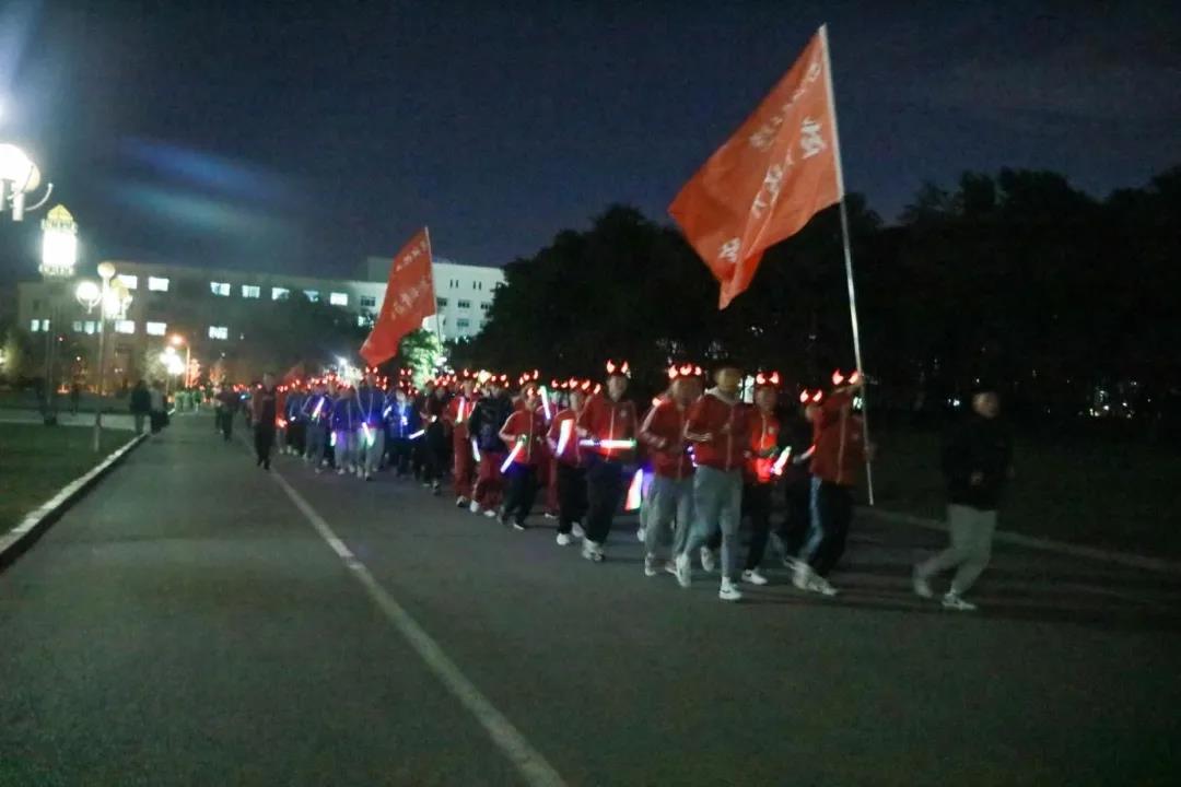 伴随着主持人激昂的开场和大学生艺术团动感十足的开场舞,大家用手中的荧光唤醒星空,“‘荧’七十华诞 跑炫彩青春”主题活动拉开序幕。