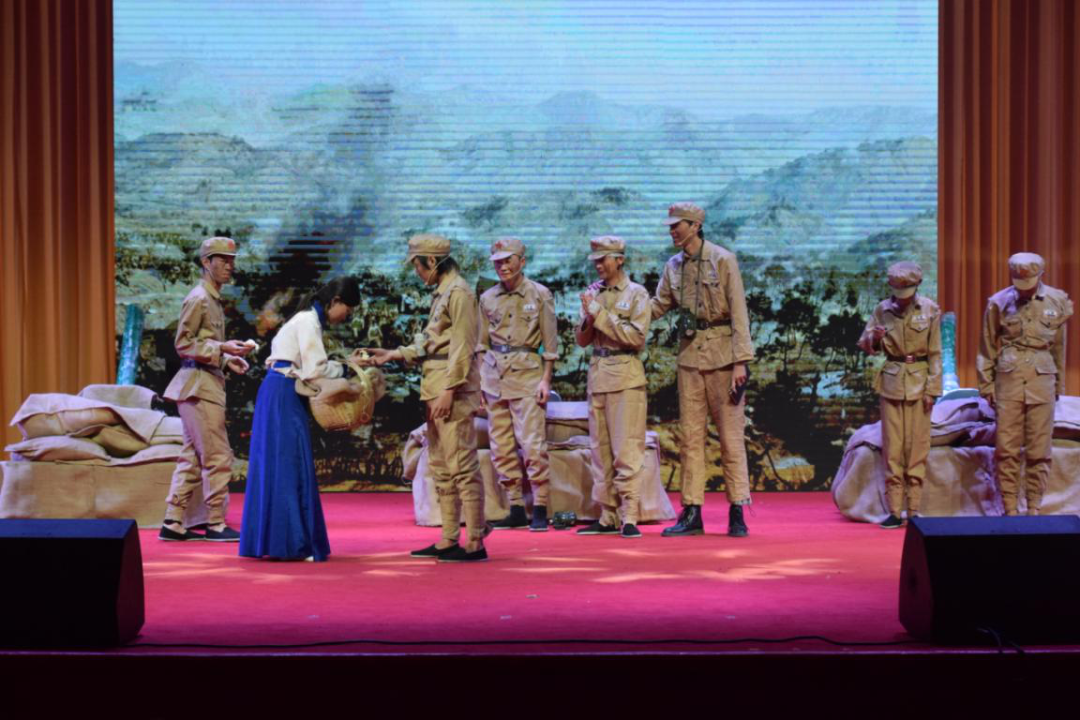 开场节目由希望剧团带我们走进抗美援朝的奋战时代,每一次的演练,每一次的拍摄,都是为了最后的成功,希望剧团谨以此剧《朝·战》来纪念那些曾在抗美援朝战场上英勇奋战的战士们。