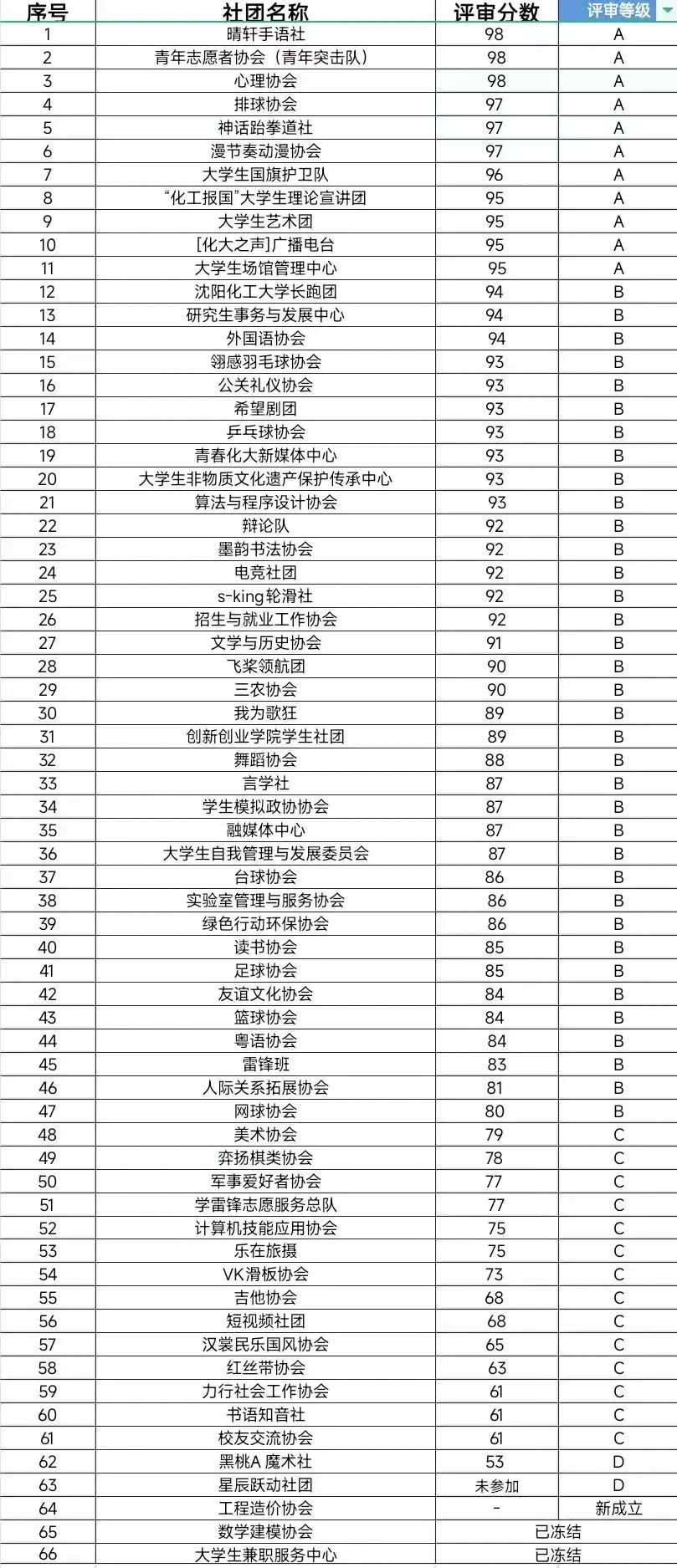 各项评估结果总得分为95分及以上的社团,年审结果评定为A 。