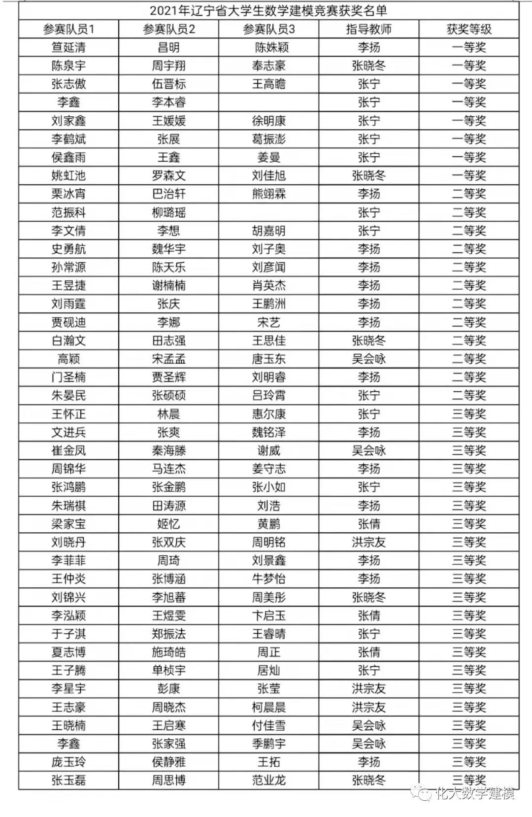 在创新创业学院、团委、理学院建模指导小组的支持与指导,以及相关学院和职能部门密切配合,taptap学子在2021年辽宁省数学建模竞赛中喜获佳绩。荣获辽宁省一等奖八项、二等奖十二项、三等奖二十一项,共四十一项奖项。具体获奖情况如下所示: