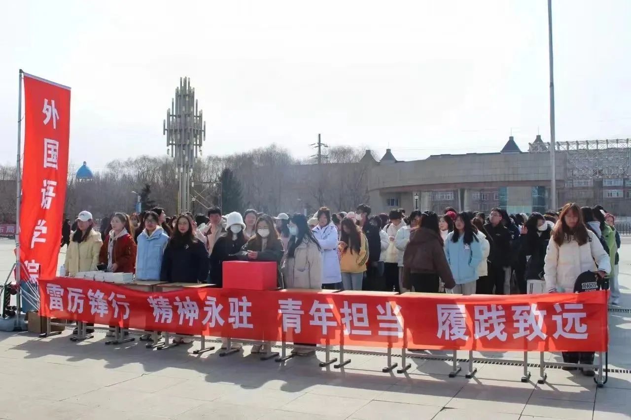 在第61个“学雷锋纪念日”到来之际, 为认真贯彻落实习近平总书记关于深入开展学雷锋活动的重要指示精神,弘扬以伟大建党精神为源头的中国共产党人精神谱系,持续推动学雷锋活动融入日常、化作经常,让雷锋精神在新时代绽放更加璀璨的光芒,外国语学院于2024年3月5日12:00—13:10在国旗广场开展了“‘雷’厉‘锋’行、精神永驻,青年担当、履践致远”学雷锋主题活动。