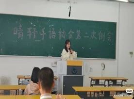 在一次协会教学的过程中,一位同学说,听到有手语协会教手语,她就积极报名参加,并且她说有时碰到一些聋哑人需要帮助时,自己很想帮助他们,但却不懂得如何交流,学会一点手语,希望自己可以帮助他们,教室里顿时响起了掌声。