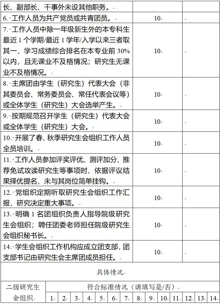 (二)二级研究生会组织(含二级院系、书院、分校区等学生会、研究生会)改革自评表