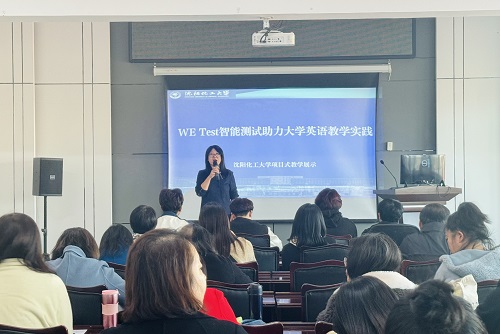 本次项目式教学示范课活动题目为“WE Test智能测试助力大学英语教学实践”。王冰为参会教师详细介绍了WE Test智能测试系统中的一系列功能,讲解了如何利用该系统进行出题及组卷,随后依托WE Test智能测试系统进行了大学英语实践教学展示,再现课堂教学过程。
